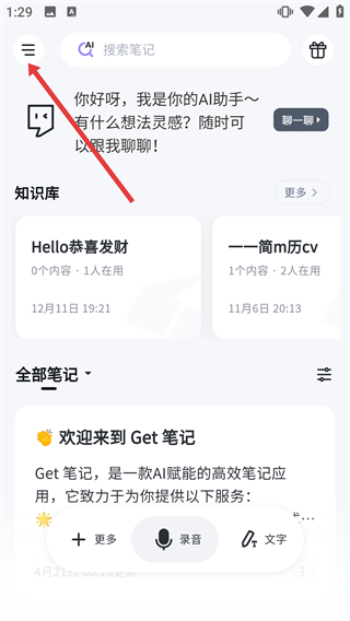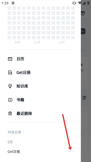 1、在【Get筆記】首頁,點擊左上角的菜單按鈕,展開側邊功能欄,可查看【日歷】-【Get日報】等功能選項。