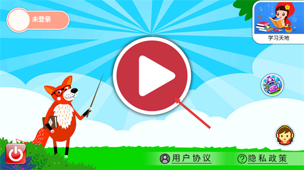 1、進(jìn)入APP啟動(dòng)頁面,點(diǎn)擊中間的播放按鈕,進(jìn)入包含多項(xiàng)學(xué)習(xí)功能的主界面。