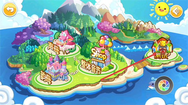 1、進入游戲主界面,可選擇【聲母】【韻母】【整體音節(jié)】模塊學(xué)習(xí),也能點擊【測試】區(qū)域檢驗學(xué)習(xí)成果。