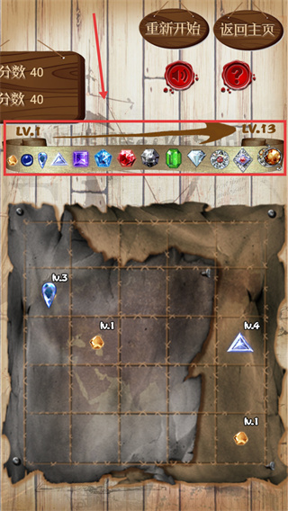 3、合并寶石后會解鎖新等級的寶石圖標(biāo),可在上方進度條查看已解鎖的寶石類型,規(guī)劃合成路線。