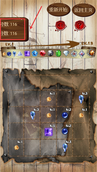 4、持續(xù)合并寶石提升等級,可快速積累分數(shù),當(dāng)分數(shù)達到目標(biāo)后可解鎖更高階的寶石合成玩法。