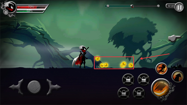 4、擊敗敵人后,移動(dòng)角色拾取掉落的金幣道具,積累資源以便后續(xù)在商店中兌換物資。