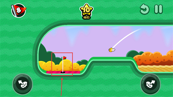 3、移動過程中,目標(biāo)是讓小鳥抵達(dá)【球洞】位置,成功進(jìn)入后可獲得星星獎勵。