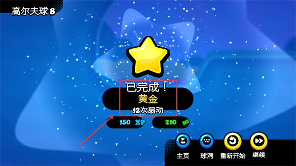 4、通關(guān)后可獲得【黃金】評級與150-XP、210貨幣獎勵,點(diǎn)擊【繼續(xù)】解鎖下一關(guān)。